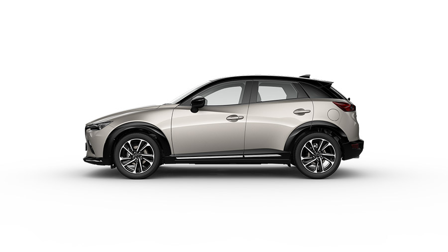 Salah satu improvement yang paling menonjol pada bagian eksterior The New Mazda CX-3 terdapat pada bagian atap mobil, yang kini hadir dengan desain warna two-tone, dengan kombinasi warna hitam yang berkilau, sehingga menampilkan looks yang lebih sporty sekaligus elegan (khusus varian 2.0 Pro). Untuk semakin mendalami feel dari looks ini, hadir pula sentuhan warna black chrome pada signature wing & warna hitam pada grille, yang berkesinambungan hingga ke bagian dalam headlamp (khusus varian 2.0 Pro). Bagian cladding juga tampil dengan warna hitam berkilau, sehingga memunculkan warna hitam yang semakin pekat. Tidak hanya itu, The New Mazda CX-3 juga memiliki desain velg terbaru, yang berbentuk seperti palang yang dipilin; menambahkan kesan cepat dan dinamis.